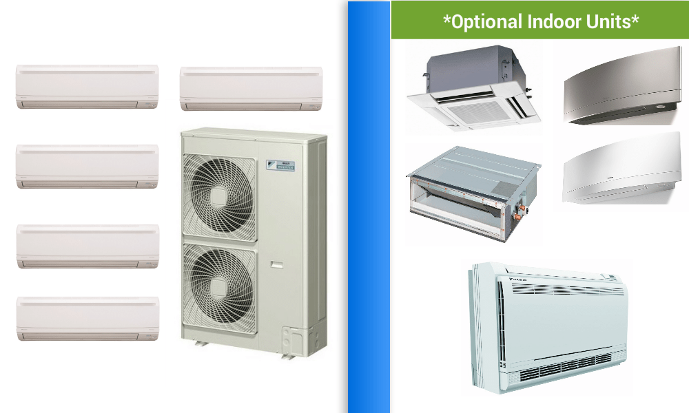 Multi-Zone 5 Rooms in Minisplitwarehouse.com Our multi zone ductless experts are here to help you purchase a system at the best price possible. Get Daikin 5 Zone Ductless Mini Split Heat Pump Air Conditioner. Price: $6,775.95 ex. tax. Call us 877-770-3548 or visit our website.