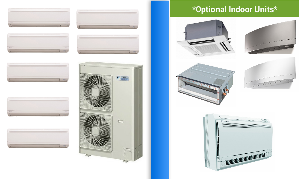 Multi-Zone Daikin 7 Rooms Heat Pump in Minisplitwarehouse.com Experts are here to help you purchase a Multi Zone Mini Split System at the best price. Get Daikin 7 Zone Ductless Mini Split Heat Pump Air Conditioner. Price: $8,084.93 ex. tax. Call us 877-770-3548 or visit our website.