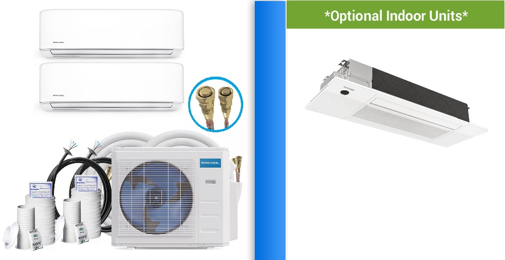What Included: (1) Indoor Wall Mount Unit with remote (1) Outdoor Unit with 15′ Install Kit 7Yr Compressor/5Yr Parts